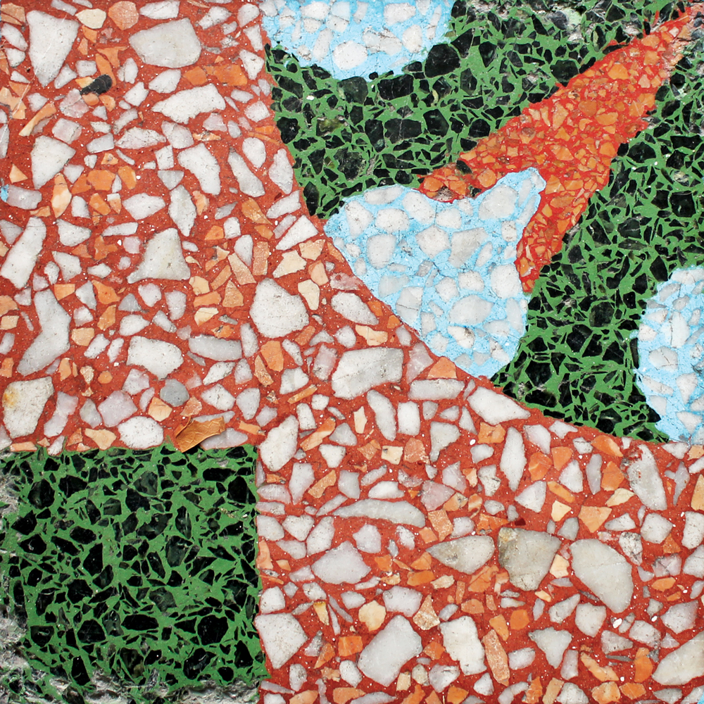 Image credit: Penny Bovell and Gabby Howlett, Underneath/Overlooked. Close up of a Scolaro terrazzo tile. Photograph courtesy of the artists